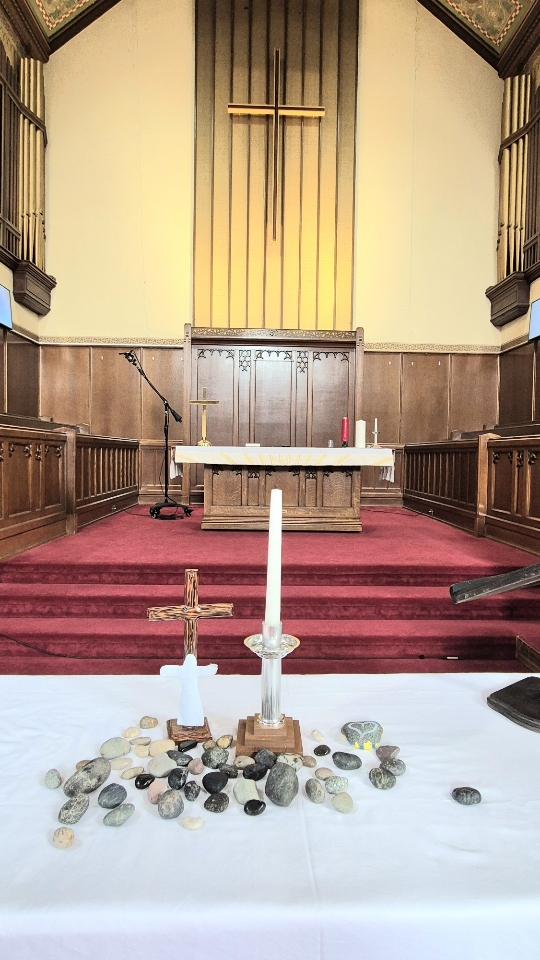 During worship on February 15, West Point Grey United Church set aside a special time to stand with the people of Tumbler Ridge. We shared prayers and reflections, and we held a simple ritual of releasing a stone as a sign of placing our grief, sorrow, and fear into God’s care. We also prepared a condolence card to send as a community.